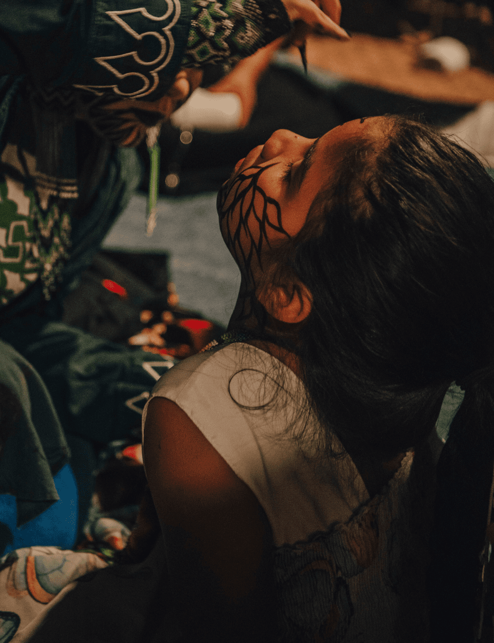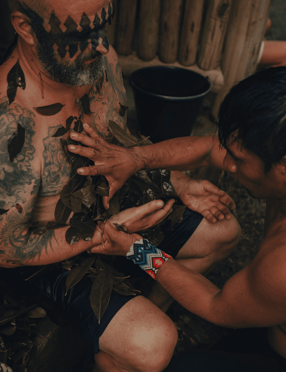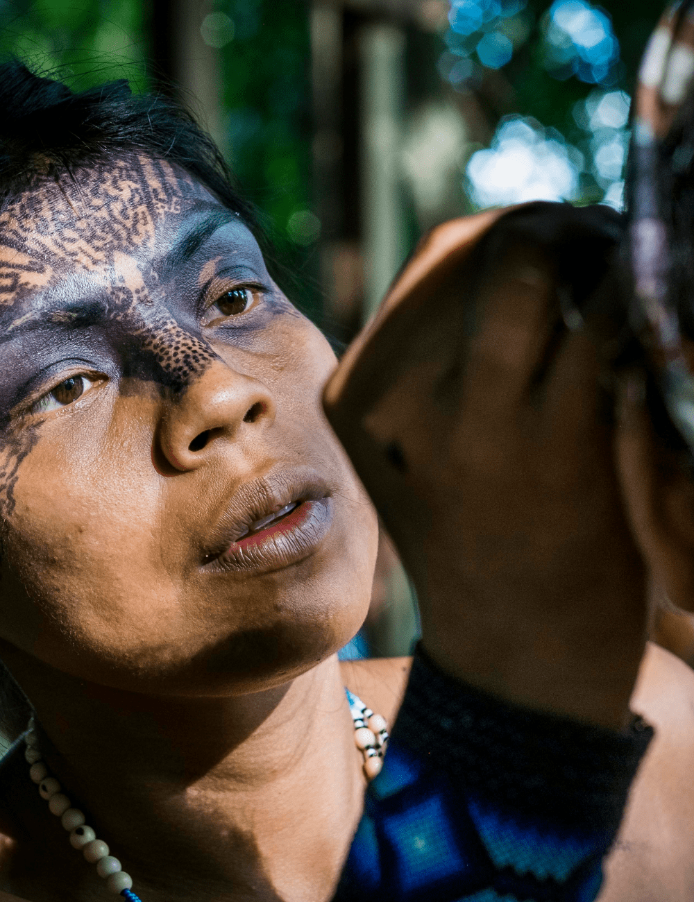 A pintura corporal Yawanawá é uma manifestação viva de sua cultura, identidade, espiritualidade e relação com a natureza. Será um momento de preparação para a cerimonia da noite, onde pintamos o corpo com o jenipapo.